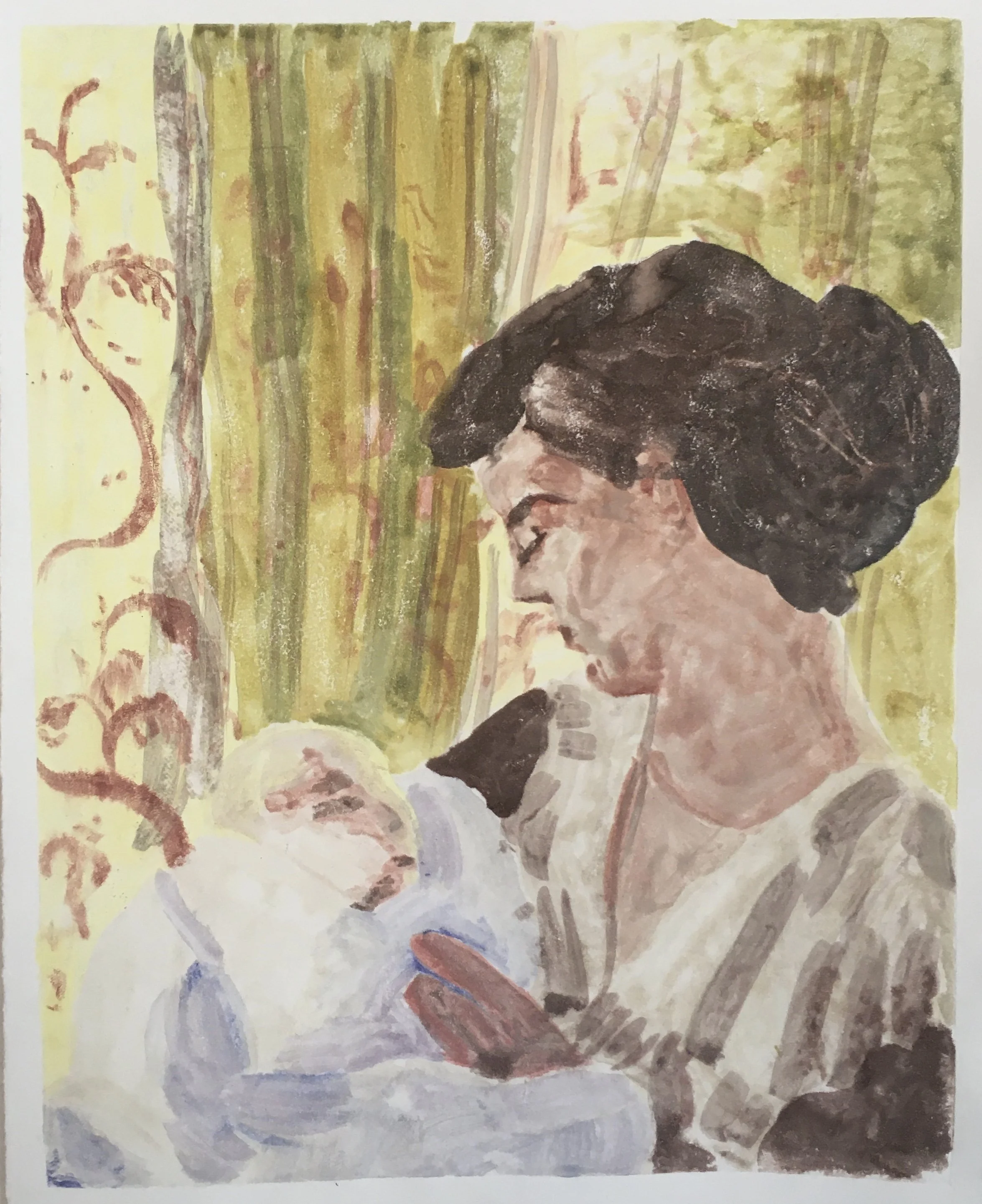 I'm just looking around my room because I've got some studies that I did of other artist’s work, so I've got Mary Cassatt hanging up, she's an incredible printmaker. It just blows my mind how innovative she was, always pushing her printmaking. I like a lot of Impressionists, such as Pierre Bonnard and Berthe Morisot. I just love their paintings and the colours that they use. But what's been really influential for me was joining Instagram. I'm not part of a group of artists in a studio, so I found a lot of artists on Instagram who are so inspiring to me. It's amazing to see what work they’re making, a lot of them are women and mothers. I found it also liberating because there is such a wide variety of work and they’re just putting it out there in the world, and I just thought maybe I can do that too.